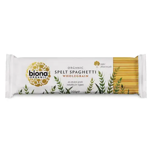 Spelt is an ancient grain cultivated thousands of years ago and only recently rediscovered. Our Biona Organic Wholegrain Spelt Spaghetti retains all the goodness of this ancient grain. It’s smooth texture, fantastic flavour, and high fibre content is a great alternative to wheat pasta. Best yet, although not gluten free, spelt can be tolerated by some people with wheat allergies. Simply combine with Biona pasta sauce or pesto for a nutritious, organic meal. Now in 100% plastic-free paper bags that can be easily recycled.
