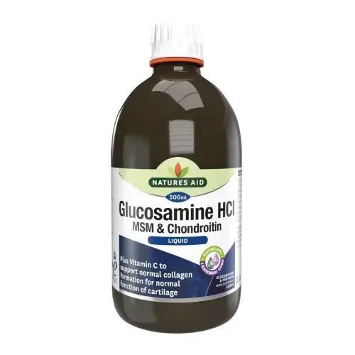 Natures Aid Glucosamine, MSM & Chondroitin Liquid is an effective way to supplement Glucosamine, MSM, and Chondroitin in an easy-to-use, apple and blackcurrant flavoured liquid with added Vitamin C to support normal collagen and cartilage function.