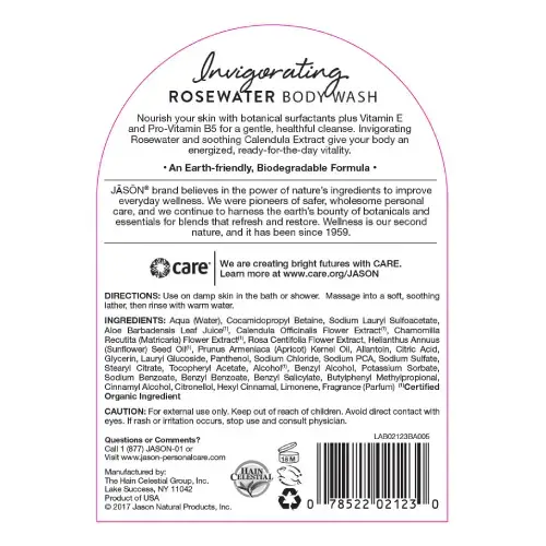 Jason Rosewater Body Wash is a gentle yet indulgent cleanser infused with the soothing essence of rosewater, delivering a refreshing and skin-nourishing experience with every use. Crafted with naturally derived ingredients, this body wash cleanses without stripping moisture, leaving your skin feeling soft, smooth, and delicately scented. Perfect for those seeking a calming and hydrating cleanse, Jason Rosewater Body Wash brings a touch of luxury to your daily routine.Enriched with rosewater, known for its soothing and hydrating properties, this body wash helps to refresh and restore your skin’s natural softness. The delicate floral essence not only leaves a light, uplifting fragrance but also works to calm and revitalize tired skin. Whether you’re starting your day with an energizing shower or unwinding after a long day, the nourishing formula ensures your skin feels pampered and replenished.