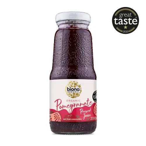 Organic, 100% Fruit Juice, not from concentrate. Start your day with zest: our vibrant ruby red pomegranate juice has an invigorating taste for a little wake-up call at breakfast. Our specially selected organic farmers press freshly harvested plump pomegranates for a rich slightly tart taste.