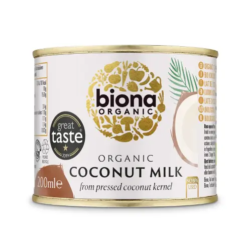 Pressed from coconut kernels, our natural coconut milk contains no artificial ingredients. As a result, the coconut fat and water content can separate, but this has no impact on the final quality of the product: simply stir into hot dishes or blend the contents to combine. This coconut milk comes in a ready-to-use, non- BPA lined can complete with a ring-pull lid, for effortless use in your cooking.
