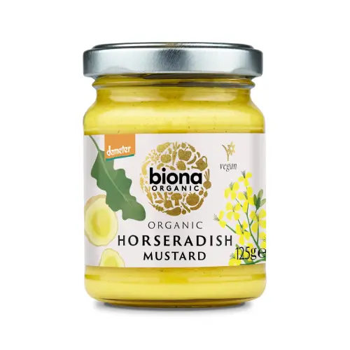Add a kick to your next meal with our Biona Organic Horseradish Mustard. This fiery little number is produced from organic ingredients, and is the perfect accompaniment to a host of dishes. Add to sandwiches and dressings to sauces and marinades.