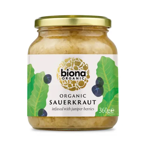 Our Organic Sauerkraut is made from certified organic fermented white cabbage and infused with organic juniper berries.