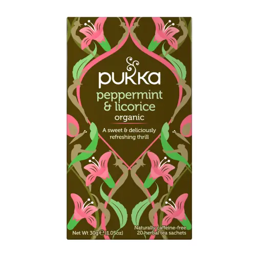 Peppermint & Licorice 20 organic herbal tea sachets (order in singles or 4 for retail outer)